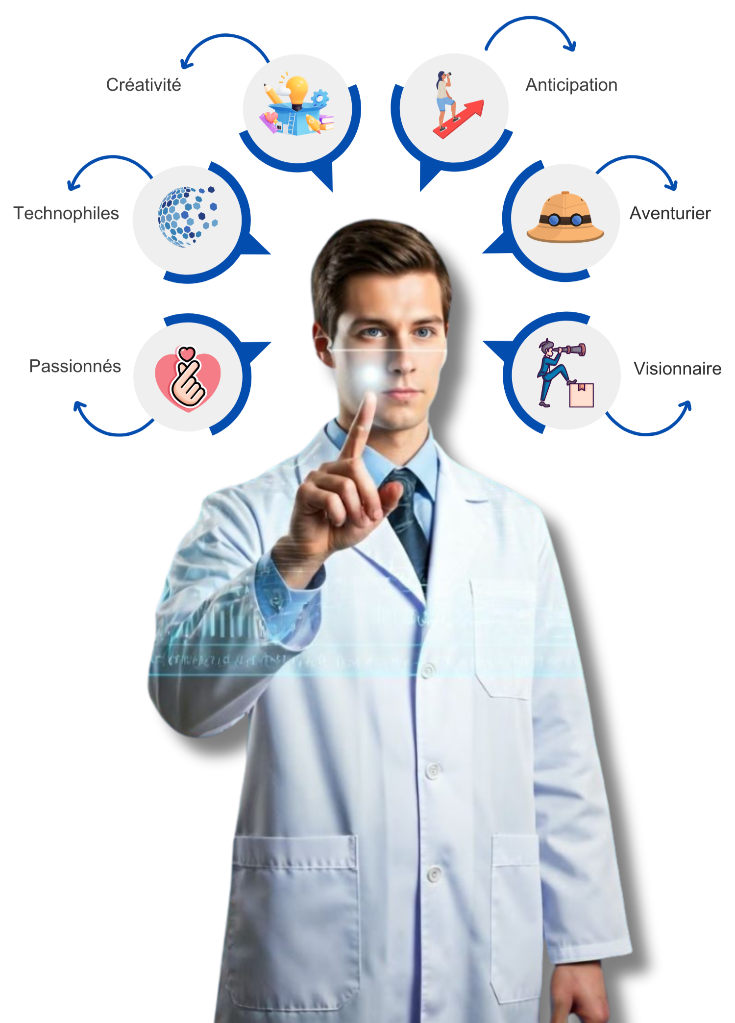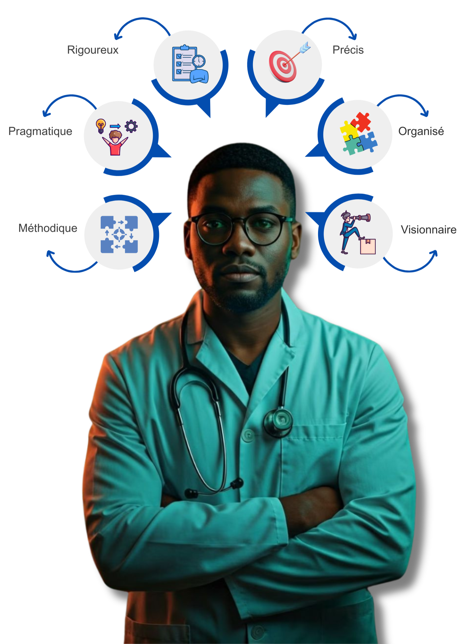 L’Humaniste est profondément motivé par l’impact de ses actions sur les individus, que ce soit ses patients, ses collaborateurs ou la communauté.Pour lui, l’éthique, la collaboration et l’amélioration continue sont des priorités absolues.